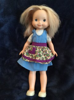 At a time when many families made their own clothes, Fisher-Price facilitated homemade additions to the My Friend dolls’ wardrobes. Most pre-made outfit packages included a pattern for an additional garment or accessory. Fisher-Price also collaborated with McCall’s to publish sewing patterns for My Friend size doll clothes. The pattern is McCall’s 9167, if you’re looking for a second hand one. A book of patterns, Four Seasons Fashions for My Friend Dolls, was also published.