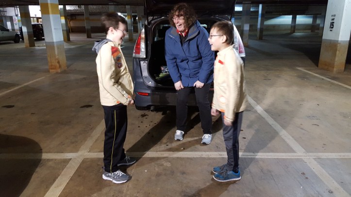 Yesterday, my family saw Star Wars: The Force Awakens with my son’s best friend. As an extra special surprise, we got the boys x-wing pilot jackets. We had them face each other with their eyes closed while we dressed them in the jackets. This is their first reaction (and mine!)